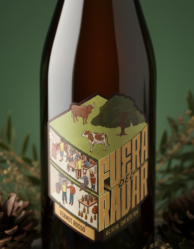 Fuera del Radar es un vermut que celebra esos momentos simples y compartidos, los que no necesitan filtro ni escenario. Diseñamos su etiqueta inspirados en ese rincón fuera del tiempo: un espacio sincero, cotidiano y lleno de vida.